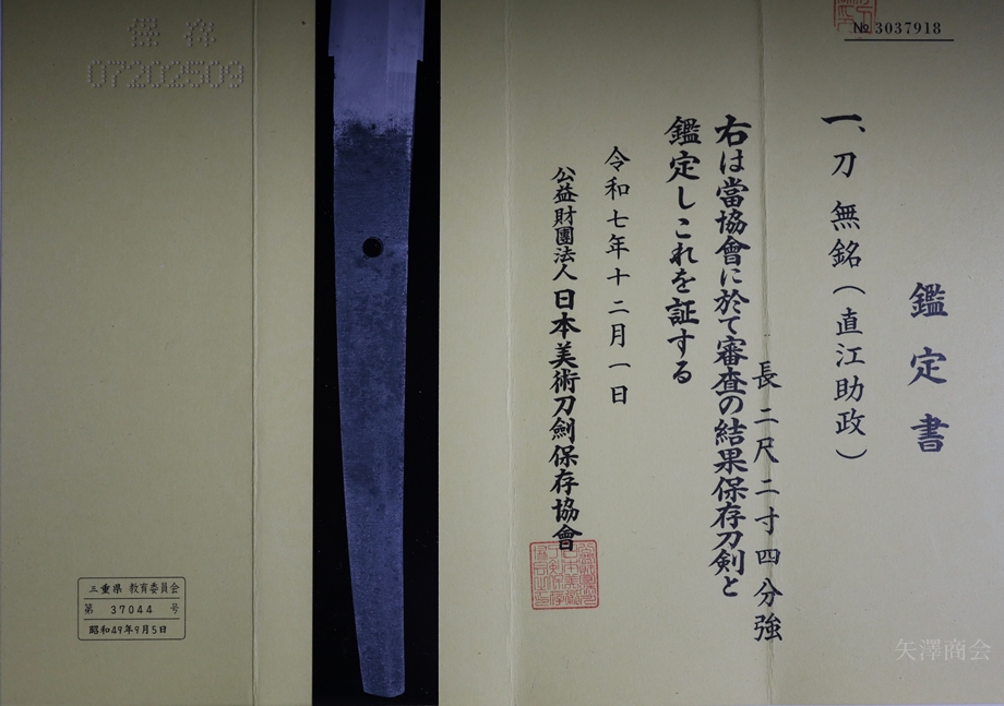 直江助政は、新々刀期の刀工で重要刀剣にも認定されており、直江新蔵と称し幕末における常州(現茨城県)水戸を代表する名工である。